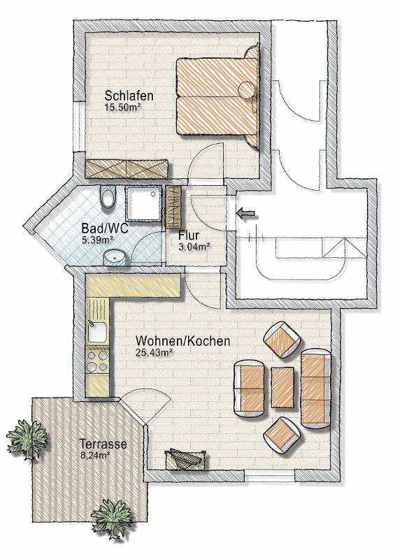 • Wohnfläche: ca. 50,55 m²